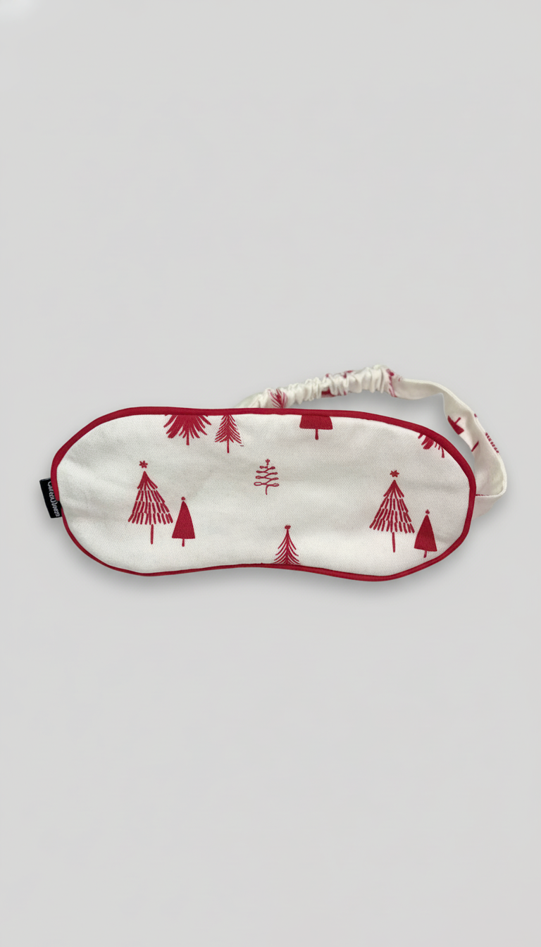 A festive sleeping mask in our exclusive lyocell Xmas Tree print—softly padded and finished with contrasting red piping.