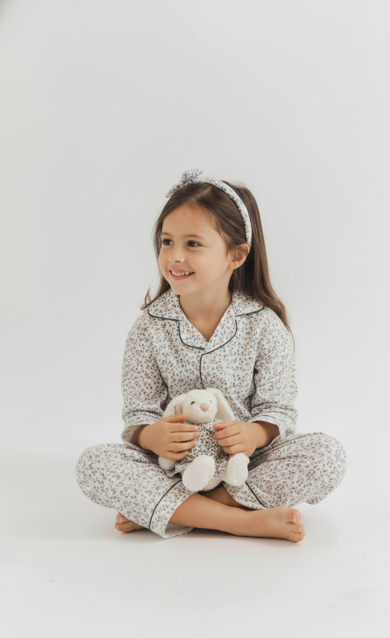 Loire Bunny —the sweetest little companion to our Loire Flowers children’s pyjamas. Dressed in a delicate Peter Pan–collared shirt made from our exclusive Loire floral print in 100% cotton mousseline. it’s a lovely gift on its own or a magical detail to complete the matching bedtime story.